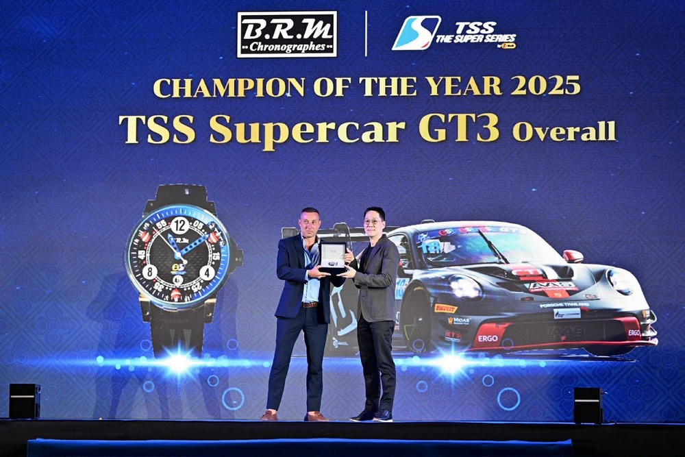 ศึกซูเปอร์คาร์ชิงแชมป์ประเทศไทยระดับอาเซียน “TSS The Super Series by B-Quik 2025” ปิดฉากฤดูกาลอย่างยิ่งใหญ่หลังการแข่งขันอันเข้มข้นตลอดทั้งปี โดยเหล่านักแข่งและทีมแข่งชั้นนำร่วมขับเคี่ยวเพื่อพิสูจน์ศักยภาพในทุกรุ่นการแข่งขัน โดยมี พิธีประกาศรางวัลประจำปี “The Night of Champions 2025” ณ อิมแพ็ค เลคฟร้อนท์ เมืองทองธานี เมื่อวันพุธที่ 17 ธันวาคมที่ผ่านมา เพื่อเฉลิมฉลองความสำเร็จของนักแข่งและทีมแชมป์ประจำฤดูกาล