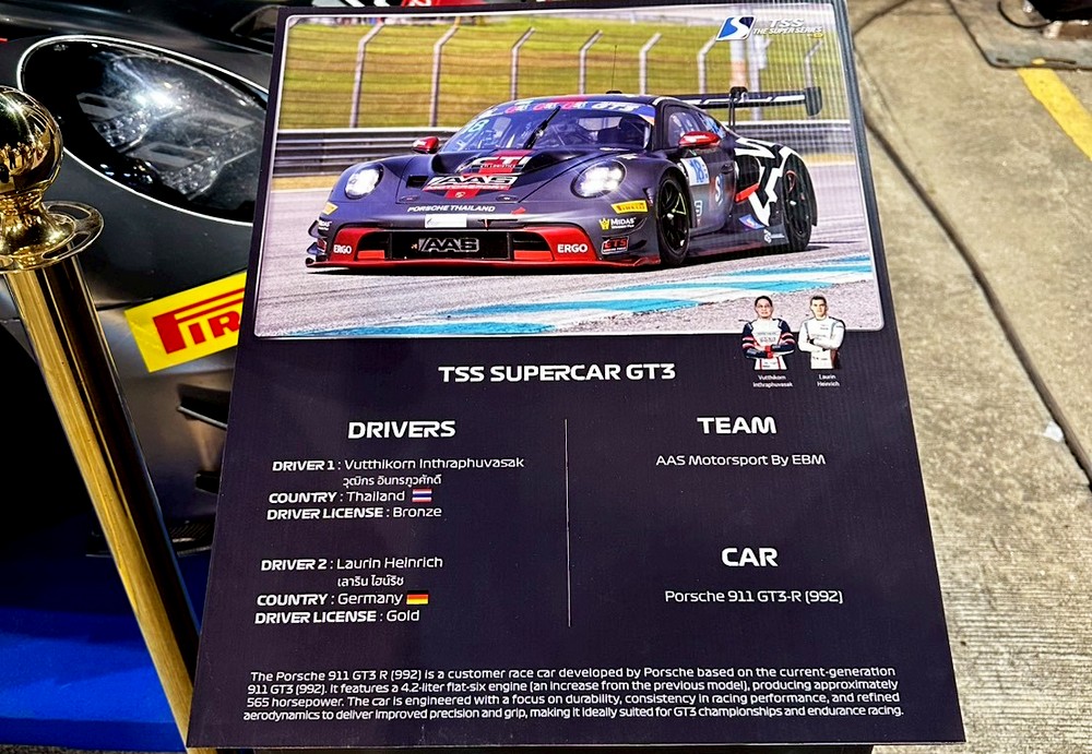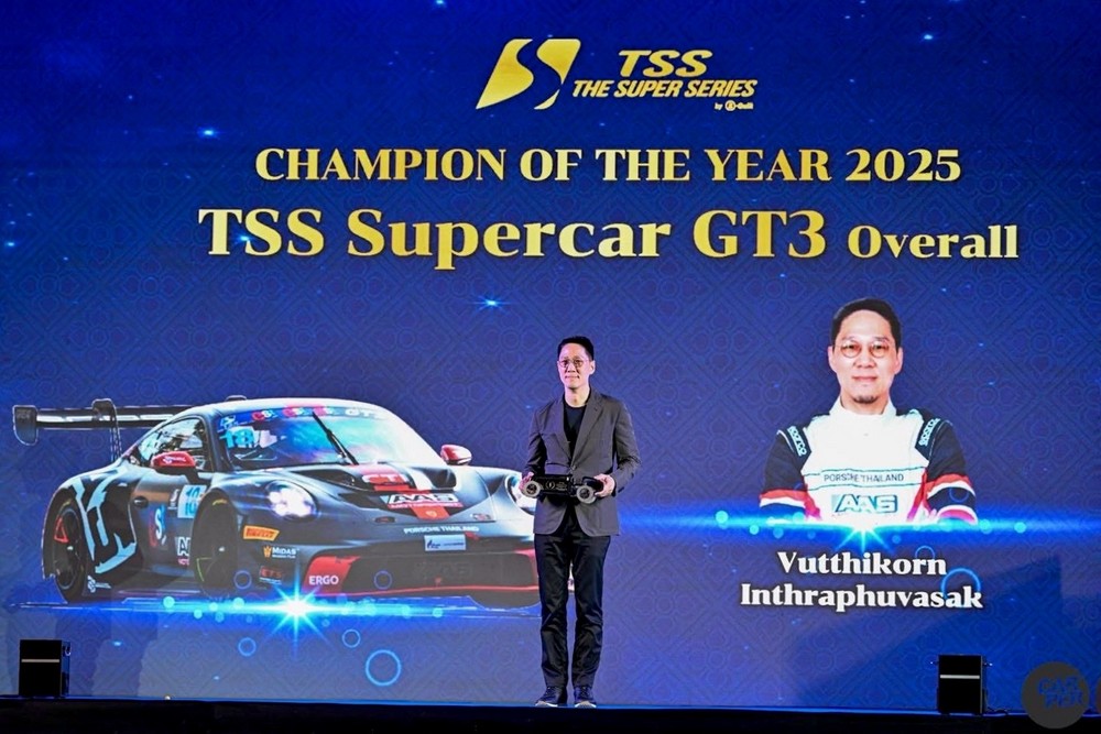 ไฮไลต์สำคัญมาจากคู่หูมือฉมัง “เต๊อะ–วุฒิกร อินทรภูวศักดิ์” นักแข่งมากประสบการณ์ และทีมเมทระดับโลกชาวเยอรมัน “ลอริน ไฮน์ริช” (Laurin Heinrich) กับรถแข่ง Porsche 911 GT3 R (992) หมายเลข 18 สังกัดทีม AAS Motorsport by EBM ที่ เต๊อะ-วุฒิกร สามาถคว้า Champion of the Year 2025 – Supercar GT3 Overall มาครองได้สำเร็จ ในขณะที่ ลอริน ไฮน์ริช คว้าถ้วยรองชนะเลิศอันดับ 2 ไปครอง
