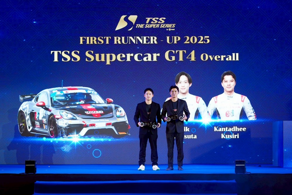 ขณะที่รุ่น TSS Supercar GT4 ของคู่หู “บูม–กันตธีร์ กุศิริ” และ “มิกกี้–คมิก กรรณสูต” กับรถแข่ง Porsche 718 Cayman GT4RS Clubsport หมายเลข 1 ที่ทำผลงานได้อย่างยอดเยี่ยม เก็บคะแนนรวมคว้าถ้วยรองชนะเลิศอันดับ 1 พร้อมพาทีม AAS Motorsport คว้าถ้วย Team Champion of the Year 2025 – Supercar GT4 Overall มาครองได้อย่างภาคภูมิ