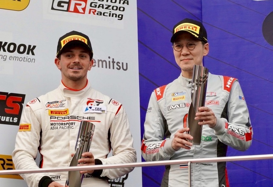 เปิดโหมดการแข่งขันกันที่ Supercar GT3 รุ่นที่ขึ้นชื่อว่าดุเดือดที่สุด ครั้งนี้นำทีมโดย “เต๊อะ วุฒิกร” และทีมเมทสุดแกร่ง “โดเรียน บอคโคลาชชี” ทั้งคู่ระเบิดพลังเต็มสนามชนิดที่ไม่อ่อนข้อให้ใครตั้งแต่รอบคัดเลือก (Qualifying) ทำผลงานกดเวลาสูงสุด ครองกริดออกสตาร์ท อันดับ 1 (P1) และ อันดับ 2 (P2) ได้อย่างสวยงาม เมื่อเข้าสู่ Race 7 “เต๊อะ วุฒิกร” เปิดฉากจากตำแหน่งโพลโพซิชั่นได้อย่างร้อนแรง รักษาอันดับผู้นำไว้เหนียวแน่น ก่อนที่รถหมายเลข 12 ของ “ต็อด ปิติ”​ (ทีมสิงห์ มอเตอร์สปอร์ต) จะตีคู่เบียดขึ้นรั้งจ่าฝูงแทน​ไปได้อย่างเฉียดฉิวกับระยะห่างที่เฉือนกันเพียงเสี้ยววินาที แม้จะพยายามงัดทุกกลยุทธ์ที่มีออกมาตอบโต้ แต่จังหวะกลับยังไม่เป็นใจ เมื่อถึงช่วงเปลี่ยนนักขับ “โดเรียน บอคโคลาชชี” ทีมเมทสุดแกร่ง รับไม้ต่อหวดทำความเร็วในช่วงท้ายเรซโชว์ประสบการณ์ระดับยุโรป ขับเคี่ยวเข้มข้น กดคันเร่งเต็มสปีด หวังบุกทวงอันดับคืนจนถึงวินาทีสุดท้าย แต่สุดท้ายต้องยอมรับความแรงของคู่แข่ง​ แม้จะพลาดท็อป​โพเดียม​ แต่นักแข่งหมายเลข​ 18 ยังคงขึ้นโพเดียมรับถ้วยรองชนะเลิศ​ (P2) มาครอง​ ทำให้แต้มคะแนนสะสมรวมของรถหมายเลข​ 18 และหมายเลข​ 12​ ขยับขึ้นมาเท่ากัน ยิ่งเพิ่มดีกรีร้อนระอุทวีคูณขึ้นในเรซถัดไป