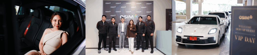 กิจกรรมในครั้งนี้ เอเอเอสฯ ได้ร่วมเป็นส่วนหนึ่งในการยกระดับประสบการณ์ลูกค้าคนพิเศษจากทาง OSIM กับบริการรับ-ส่งสุดเอ็กซ์คลูซีฟด้วยยนตกรรมจากปอร์เช่ โดยมีทั้งรุ่น ปอร์เช่ พานาเมร่า 4 อี-ไฮบริด (Panamera 4 E-Hybrid) และ ปอร์เช่ มาคันน์ (Macan) พร้อม Porsche Pro เพื่อนร่วมเดินทางที่พร้อมให้ให้คำปรึกษาและคำแนะนำเกี่ยวกับตัวรถได้อย่างเต็มที่ เพื่อให้ลูกค้าคนพิเศษได้สัมผัสทุกมิติของรถยนต์ปอร์เช่ตั้งแต่ก้าวแรกที่เดินทางจนถึง OSIM Shop ซึ่งเป็นจุดหมายปลายทาง เพื่อเข้าร่วมกิจกรรมในครั้งนี้ได้อย่างสะดวกสบายและเหนือระดับ