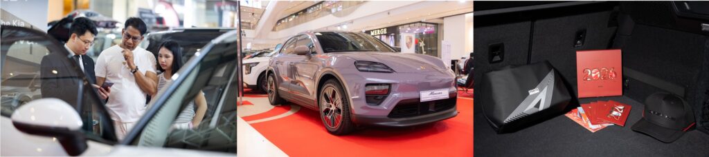 ภายในงานจะได้สัมผัสยนตรกรรมปอร์เช่หลากหลายรุ่นที่สะท้อนอนาคตแห่งการขับขี่ ได้แก่ ปอร์เช่ คาเยนน์ เอส อี-ไฮบริด (Cayenne S E-Hybrid Coupé) สปอร์ตเอสยูวีปลั๊กอินไฮบริด ที่มาพร้อมประสิทธิภาพในการขับขี่และความคุ้มค่าขั้นสุดในการเป็นเจ้าของ, ปอร์เช่ มาคันน์ (Macan) สปอร์ตเอสยูวีที่โดดเด่นด้านดีไซน์และการขับขี่ที่คล่องตัวในชีวิตประจำวันด้วยพลังงานไฟฟ้าล้วน, ปอร์เช่ พานาเมร่า 4 อี-ไฮบริด เอ็กเซ็กคูทีฟ (Panamera 4 E-Hybrid Executive) สปอร์ตซาลูนระดับลักชัวรี่ ด้วยฐานล้อที่ยาวขึ้น 150 มม. เพิ่มพื้นที่ด้านหลังอย่างเหนือระดับที่ผสานความสปอร์ตและความสะดวกสบาย พร้อมระบบไฮบริดขั้นสูง, ปอร์เช่ ไทคานน์ เทอร์โบ (Taycan Turbo) สปอร์ตคาร์พลังงานไฟฟ้า 100% ที่สะท้อนตัวตนของปอร์เช่ในยุคใหม่อย่างชัดเจน โดดเด่นด้วยการตกแต่งสไตล์ Turbonite พร้อมระบบเสียง Burmester สมรรถนะที่ทรงพลังยิ่งขึ้น ไฟหน้า HD-Matrix LED และระบบเบรก PSCB ที่ช่วยลดฝุ่นเบรกและคงความเงางามของจานเบรก