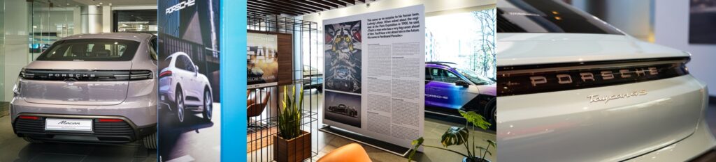 ภายในงาน ผู้เข้าชมจะได้พบกับการนำเสนอเรื่องราวตั้งแต่ รถยนต์ไฟฟ้าคันแรกของเฟอร์ดินานด์ ปอร์เช่ (Ferdinand Porsche) เมื่อปี 1898 ไปจนถึงยุคแห่งยนตรกรรมไฟฟ้าที่สะท้อนวิสัยทัศน์แห่งความไม่หยุดนิ่งของแบรนด์ปอร์เช่ พร้อมการจัดแสดงรถยนต์พลังงานไฟฟ้าในปัจจุบันอย่าง ปอร์เช่ ไทคานน์ (The All-Electric Taycan) สปอร์ตซาลูนไฟฟ้าเต็มรูปแบบ และ ปอร์เช่ มาคันน์ (The New All-Electric Macan) สปอร์ตเอสยูวีไฟฟ้ารุ่นใหม่ล่าสุด พร้อมกิจกรรมทดลองขับเพื่อสัมผัสถึงจิตวิญญาณแห่งนวัตกรรมระดับตำนานอย่างเอ็กซ์คลูซีฟ